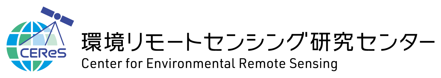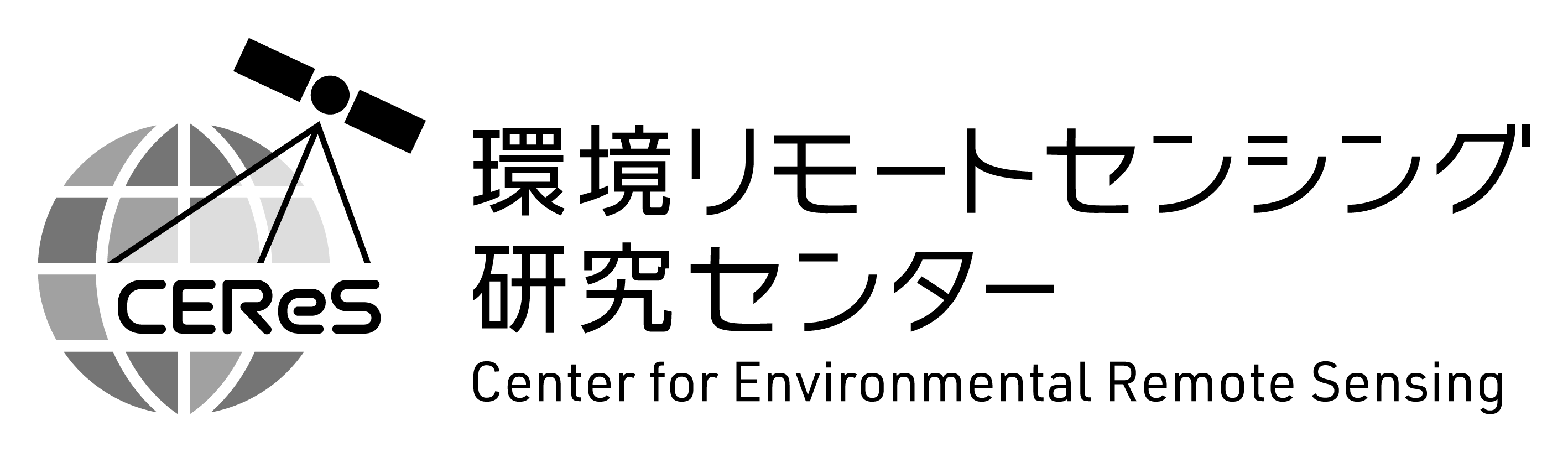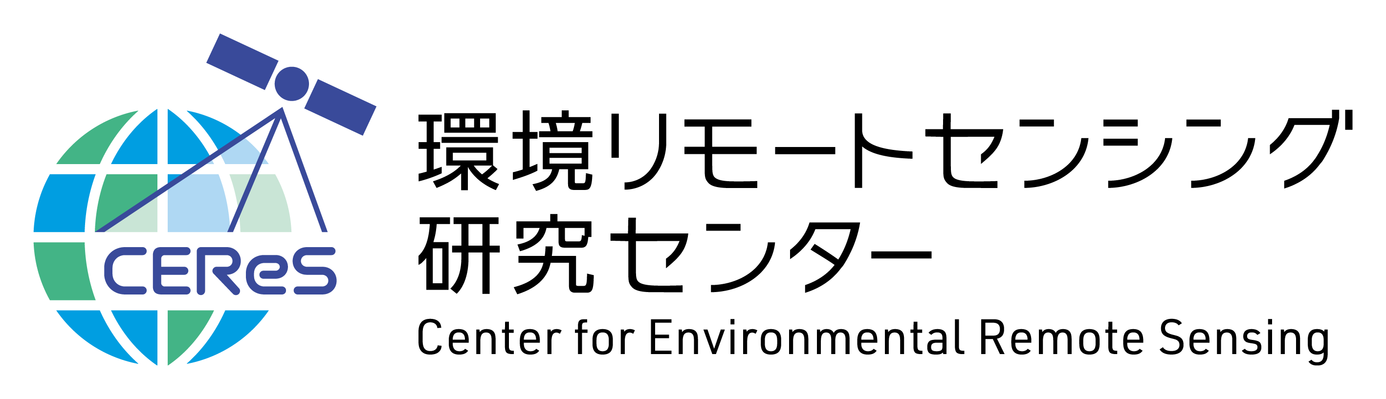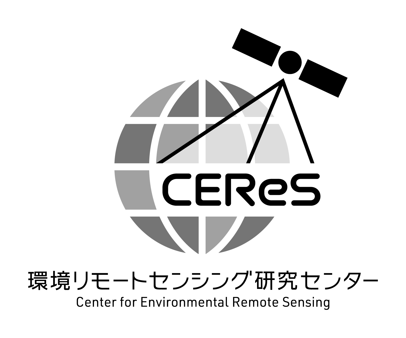 「地球」と「衛星」をモチーフにしたマークです。「方眼の目」により、リモートセンシングをイメージできるものとしました。カラーは、地球環境をイメージするグリーンとブルーとし、CEReSの文字と衛星をより目立つような配色にしています。CEReS の文字は、クールで先進的かつ、やわらかさも感じる書体となっています。マークのみでも、研究分野が多くの人に伝わるようなロゴを目指しています。