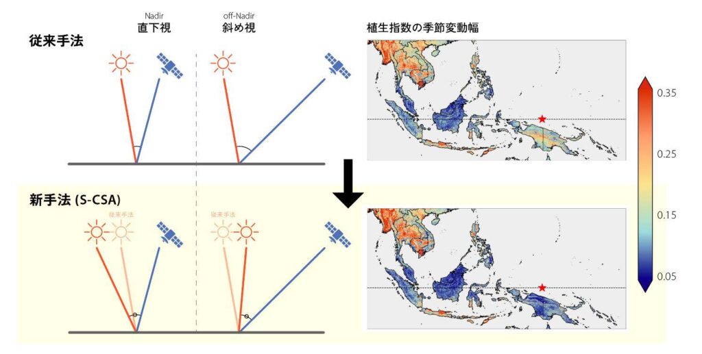 They proposed ”Himawari-8/9 Optimal Geometry (S-CSA) for SE Asia Monitoring Himawari-8/9 Optimal Geometry (S-CSA) for SE Asia Monitoring” and successfully achieved a significant reduction in the bias caused by the relative positions of the satellite, the Earth’s surface, and the Sun.